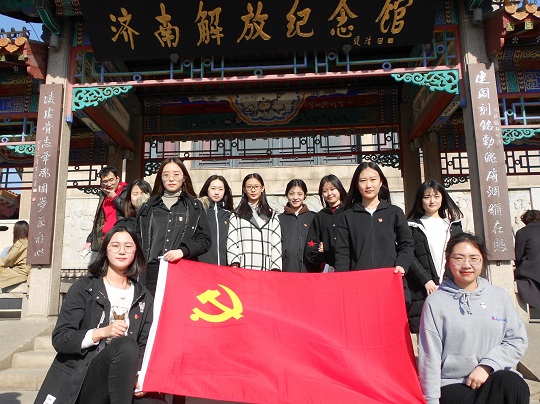 同学们首先参观了解放阁外墙上由陈毅元帅所题写的“解放阁”碑刻和台基东侧立的解放济南战役革命烈士纪念碑,大家在济南战役纪念碑前鞠躬默哀,以示对先辈们深深的敬意。随后,同学们登上解放阁参观二层的济南战役纪念馆纪念大厅和三层观瞻大厅。大厅中陈列的历史资料、烈士事迹,真实还原了济南解放战役的艰苦卓绝和革命烈士们的豪迈气魄,将一副辉煌壮丽的革命图景在我们面前展开。学生党员和入党积极分子们受到革命烈士们英勇事迹的感染,从信仰的力量和真理的光芒中汲取到了奋进的力量。行政管理1603班刘瑞同学谈到,“昭昭往事,惕惕后人。作为一名学生党员,我们要继承英烈遗志,不断增强“四个自信”,切实增强对国家和民族的历史责任感和使命感,在学习和工作中激发奋斗力量,立志报国成才。”公共事业管理1601班李悦同学说,“在今后的学习和工作中,我们要始终铭记和发扬革命前辈的英勇无畏精神,不怕困难,不忘初心,树鸿鹄志,行致远路。”
