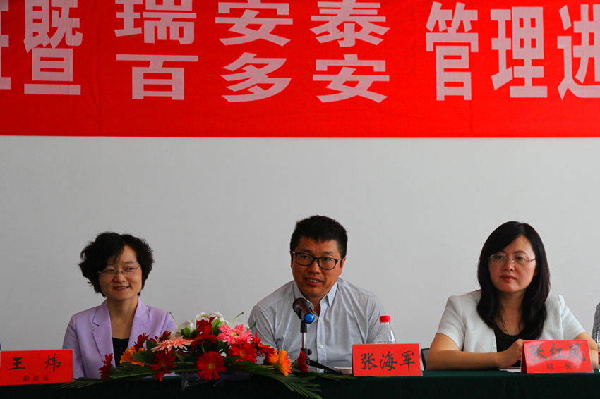 院长张红凤、副院长董西明等出席本次开学典礼,本次活动由山东百多安医疗器械有限公司总经理助理、人力资源部经理周霞主持。