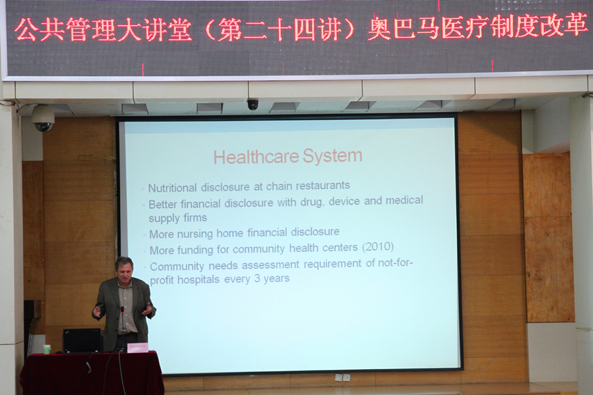 5月15日,公共管理大讲堂(第二十四讲)在燕山校区第三报告厅举行,美国加州太平洋大学教授、经济学博士、健康管理中心主任Peter E. Hilsenrath应邀就“奥巴马医疗制度改革”做专题讲座,副院长李国锋教授主持了本次报告会,探花视频