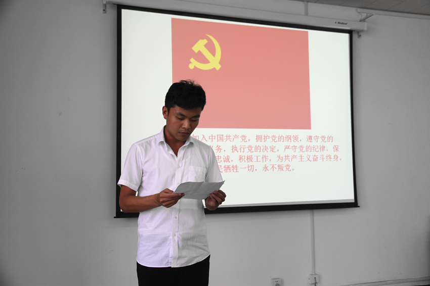 隆重举行2015年“七一”新党员宣誓大会,学院党委委员、教工党支部书记、学生党支部书记、本学期新发展的23名学生党员以及入党积极分子代表参加会议,会议由党委副书记周炎主持。