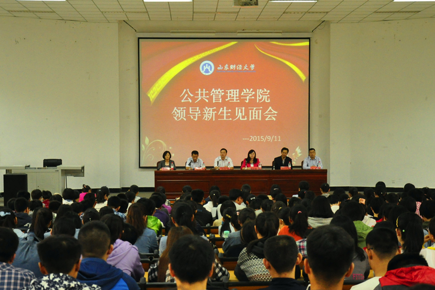 2015级新生见面会在明水校区5021举行。院长张红凤、党委书记郑磊、副院长董西明、副书记周炎、院长助理贾海彦、张禹、辅导员李广华、王超以及2015级新生参加本次会议,会议由党委副书记周炎主持。