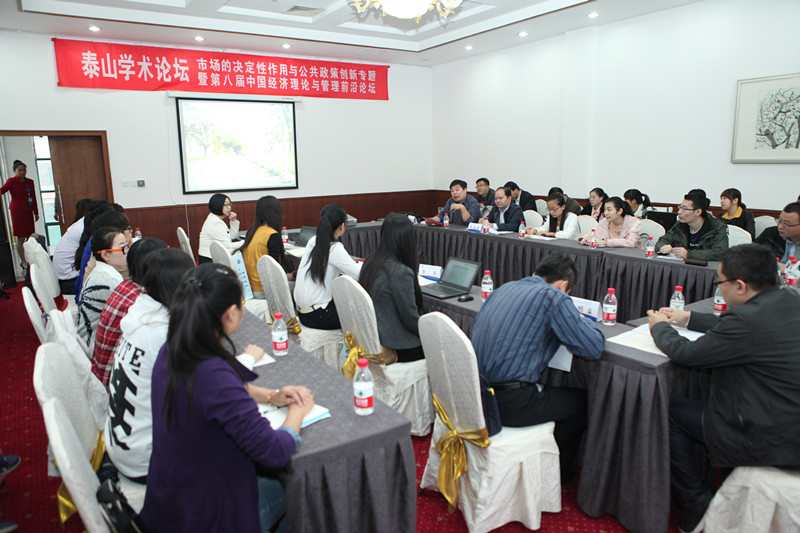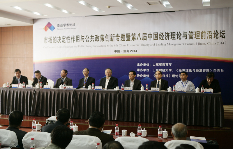 “泰山学术论坛暨第八届中国经济理论与管理前沿论坛”隆重开幕 发布时间:2014-10-21 00:00 浏览 次 10月18日上午,由山东省教育厅主办、探花视频 和《经济理论与经济管理》杂志社联合承办、《光明日报》理论部协办的“泰山学术论坛——市场的决定性作用与公共政策创新专题暨第八届中国经济理论与管理前沿论坛”在探花视频 隆重开幕。学校党委书记、校长刘兴云教授、山东省教育厅张兴民副厅长、中国人民大学《经济理论与经济管理》主编方福前教授和《光明日报》理论部张雁主编出席了大会并发表致辞。副校长聂培尧教授主持了开幕式。 探花视频 党委书记、校长刘兴云致欢迎词 校党委书记、校长刘兴云教授向参会嘉宾介绍了探花视频 的历史和发展战略,并希望通过此次论坛的举办,与来自全国各地的专家、学者们共同进行学术研讨,吸纳新观点,开拓新视野,激发新活力,为我国公共政策理论的创新发展提供更多的参考依据,促进公共管理学科不断前进发展。山东省教育厅张兴民副厅长向各位参会代表介绍了山东省“泰山学者”建设工程的概况和发展,泰山学术论坛的宗旨,并希望各位专家、学者借助泰山学术论坛这一平台,加强切磋研讨,充分交流成果,全面认识市场决定性作用的内涵和实践意义,共同推动在全社会树立政府和市场关系的正确观念,促进高效廉洁服务型政府的建设和经济持续健康发展。《经济理论与经济管理》杂志社主编方福前教授介绍了“中国经济理论与管理论坛”的基本概况,并指出如何处理好政府与市场的关系是一个需要深入研究讨论的重大课题,期待着与会学者就本次论坛主题发表自己的真知灼见,通过大家的共同努力,把如何处理好政府与市场关系的研究和讨论,推进到一个新的高度。《光明日报》理论部张雁主编介绍了《光明日报》的基本情况,并充分肯定了本届泰山学术论坛暨中国经济理论与管理前沿论坛的选题,认为论坛以市场的决定性作用与公共政策创新为主题,邀请诸位专家学者开展此次学术会议,是学界积极承担学术使命、担当学术界社会责任的生动体现。 山东省教育厅副厅长、党组副书记张兴民致辞 会议研讨交流包括“专家主题报告”、“大会发言”、“小组论文研讨”和“编辑-读者面对面”四个环节。有来自中国社会科学院、中国人民大学、国家行政学院、山东大学、浙江大学、上海财经大学、厦门大学、哈尔滨商业大学等33所国内知名高校和科研院所的专家、学者,来自《经济理论与经济管理》、《经济纵横》、《经济与管理评论》、《西部论坛》等学术期刊的主编、主任,来自《人民日报》理论部、《光明日报》理论部、山东教育电视台、新华网、人民网、光明网、大众网等15家期刊、报纸和新闻媒体的编辑、记者,以及济南市高校的师生代表近300人参加本次大会。 《经济理论与经济管理》杂志社主编方福前教授致辞 专家主题报告环节,大会邀请的五位专家分别就《改革宏观调控方式与保持经济合理增长》、《经济结构调整的几个维度》、《市场的力量与政府的利益》、《中国经济减速的原因与出路》以及《推进国家治理现代化》等几个专题做了精彩演讲。 《光明日报》理论部张雁主编致辞 大会邀请了浙江大学、山东大学等知名高校的经济学院、管理学院的院长、知名专家共13位教授作了大会发言,教授们从《新常态下中国经济增长的源泉与产业、企业的整合》、《市场在资源配置中其决定性作用下的政府职能与行为》、《政府权力清单制度建设的浙江经验》、《中国新生代农民弃农问题的思考》、《完善社会主义市场规则体系的研究》、《我国官员更迭制度对国有投资的影响》、《新型城镇化与土地政策创新》、《中国(上海)自贸试验区制度创新与政府职能转变》、《经济改革的逻辑:来自中国经验的证明》、《为什么凯恩斯主义盛行于世而经济危机愈演愈烈》、《有效市场、有能企业与有为政府》、《中国建筑导向经济的历史成因与未来走向》以及《中国政府规制的生态演化》等方面论述了市场与政府的关系及其公共政策创新前沿。 中国社会科学院学部委员、经济学部副主任刘树成教授 大会共收到学术论文40余篇,经专家评阅,选取了30篇论文结集成册,并选取8篇优秀论文分两个小组进行了研讨。作者们从“推广政府购买公共服务的路径分析”、“构建中国特色政府与市场新型关系”,到“国家治理的中国经验——城镇化的路径变迁与中国转型期新型城镇化大发展运势”、“基于质素变迁的农村社区管理秩序整合的路径探讨:一个多案例研究”等多个专题方面展开了激烈的研讨。 论文分组研讨 编辑-读者面对面 探花视频 院长张红凤教授大会综述 探花视频 副校长吴彬教授致闭幕词 副校长吴彬教授认为,本次论坛时间虽短,但主题很鲜明,内容十分充实,议程也比较紧凑,大家一致认为成果也是显著的。来自国内知名高校和科研院所的专家学者围绕大会的主题进行了广泛深入的交流和探讨,代表们提出了许多有益的见解,深刻而明晰、透切而精到;来自全国各地的期刊、报纸和新闻媒体的主编、主任,与参会的读者们进行了面对面的互动交流,加深了彼此的了解,提升了学术研究的认识,增进了友谊,联络了感情,也为今后的交流合作奠定了良好的基础