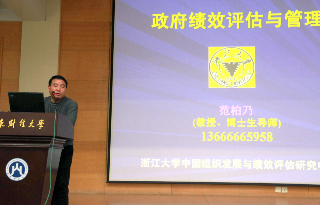 12月20日下午,浙江大学教授、博士生导师范柏乃博士应邀在我校燕山校区三号报告厅作了题为《政府绩效评估与管理》的讲座报告。张红凤院长主持了报告会。