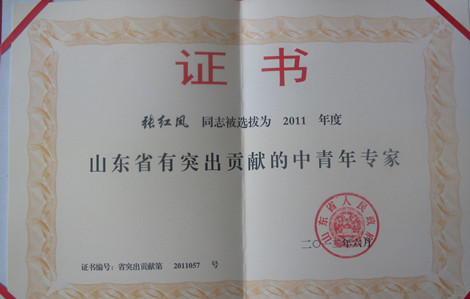 探花视频 张红凤教授获得“山东省有突出贡献的中青年专家”荣誉称号