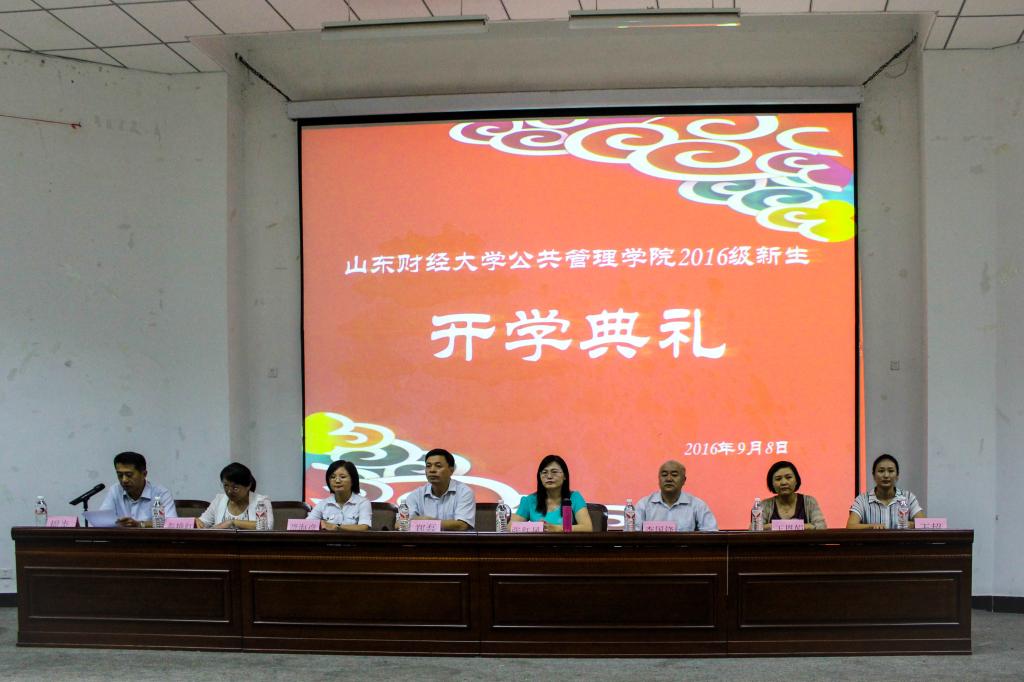 2016级新生开学典礼在明水校区5201顺利召开。院长张红凤,党委书记郑磊,副院长李国锋,党委副书记周炎,院长助理贾海彦,城市管理系主任秦艳红,学工办主任、团委书记王恩娟,辅导员王超出席了本次典礼。2016级全体新生参加了本次开学典礼。本次典礼由周炎副书记主持。
