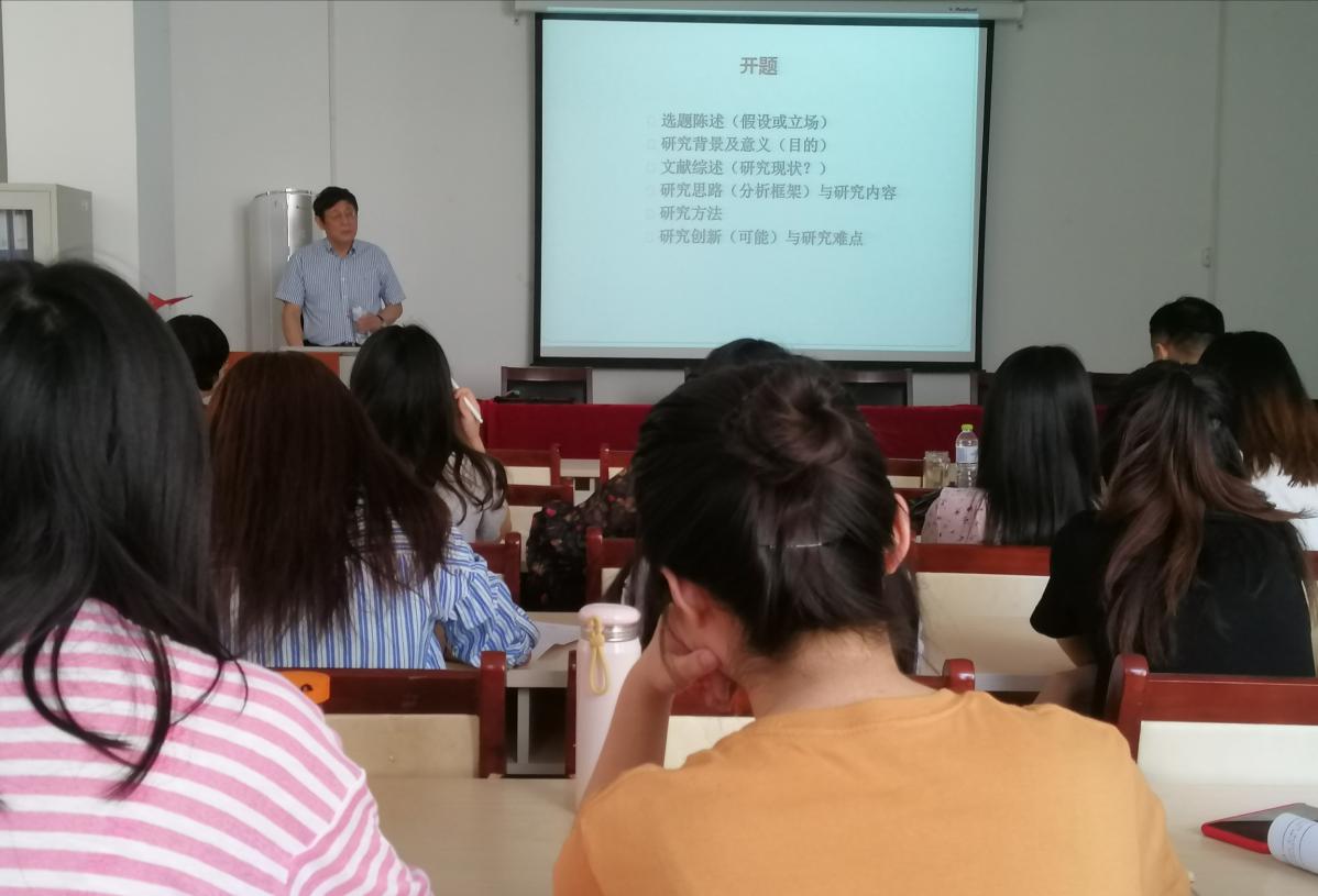 研究生做了题为《如何写好学位论文》的学术报告。报告由国际交流与合作处处长王剑波教授主持,学院党委书记李国强教授、副院长贾海彦教授、公共事业管理系副主任宋燕副教授以及学院全体研究生出席并聆听了此次报告。