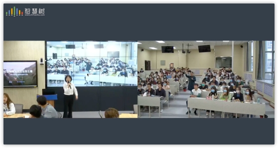 学生和塔里木大学学生处在现代化的远程直播互动智慧教室里,通过“智慧树”远程直播互动调度系统,根据课堂教学需求即时切换两校课堂画面,塔里木大学的学生不仅能实时听到课程内容,还能举手发言,与探花视频