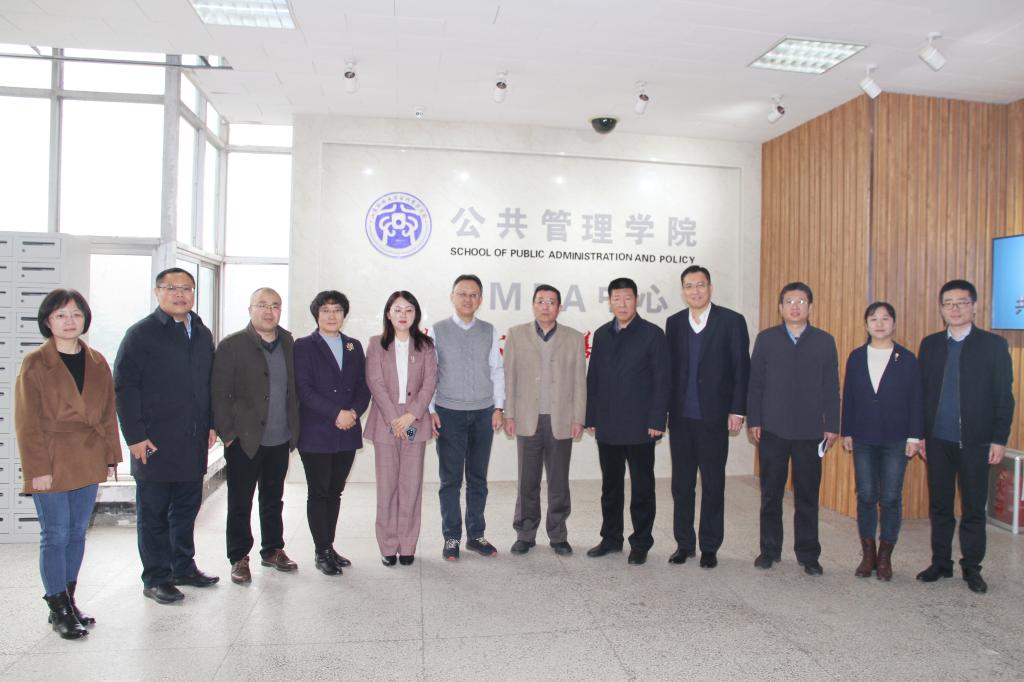 欧名豪教授,教育部公共管理类专业教指委秘书长、浙江工商大学校长郁建兴教授(线上参加),教育部公共管理类专业教指委委员、山东大学(青岛)副校长曹现强教授(线上参加),山东理工大学经济与管理学部主任李平教授,山东工商学院探花视频