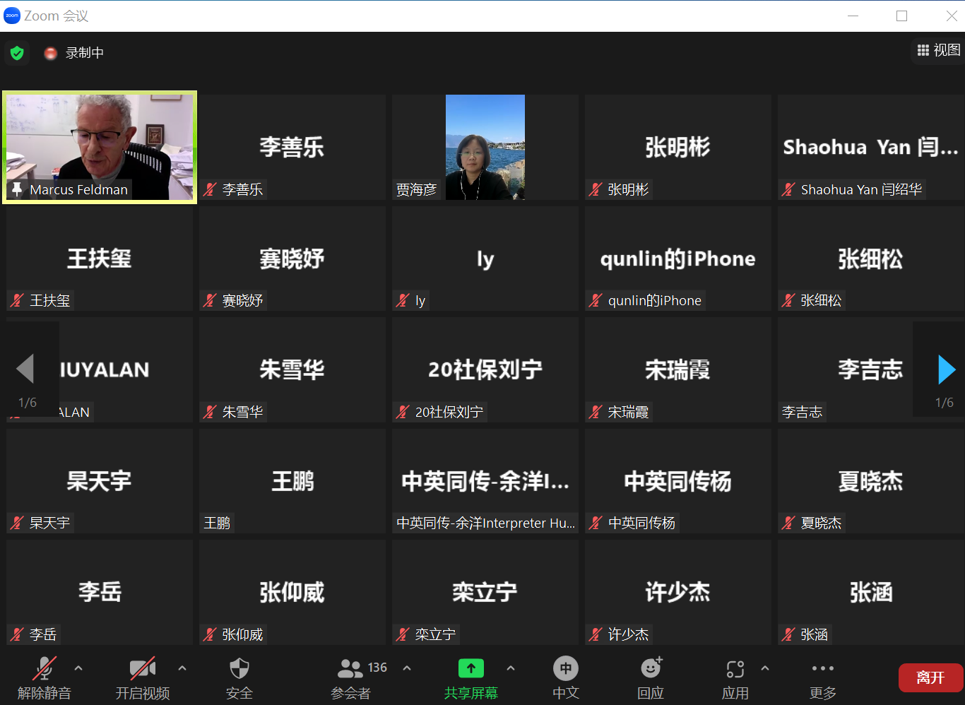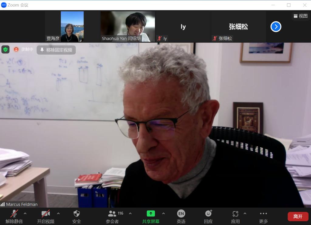 此次讲座采取了同声传译的翻译方式,借助zoom软件同时提供中英文两个频道。Feldman教授的精彩演讲引起了与会师生的强烈兴趣,大家与Marcus W. Feldman教授进行了充分的互动交流。