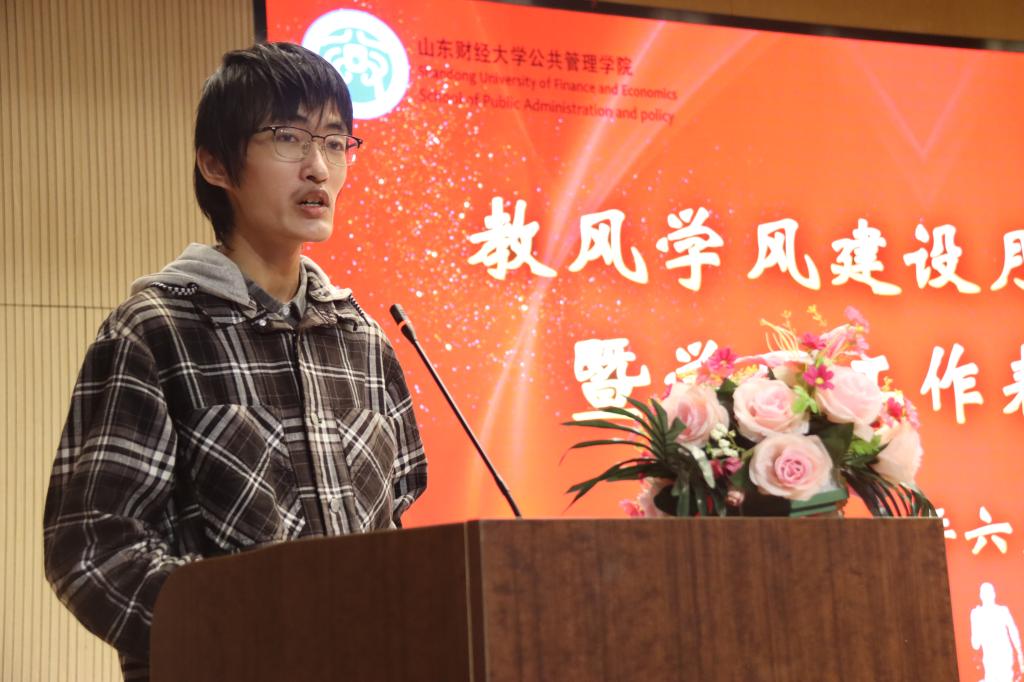 学习标兵代表、2020级行政管理创新实验班李阳同学在发言中分享了学习经验,认为有目的地学习至关重要,要保持思考,学会提问,向知识发问、向作者发问、向自己发问,找到合理有效的学习方法和适合自己的学习节奏。
