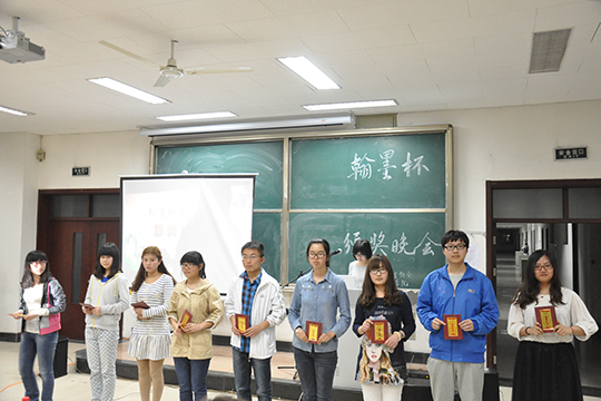 4月18号,由探花视频 学生会宣传部和校书画协会联合举办的第六届“翰墨杯”校园书画大赛颁奖晚会在明水校区2211教室举行。校书画协会会长、探花视频 学生会副主席、副秘书长及各部副部长参加了活动。