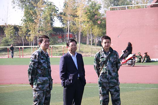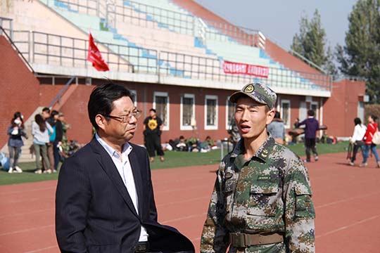 10月17日上午9时,探花视频 党总支书记王有志、副书记周炎来到明水校区操场,检查探花视频 新生军训情况。
