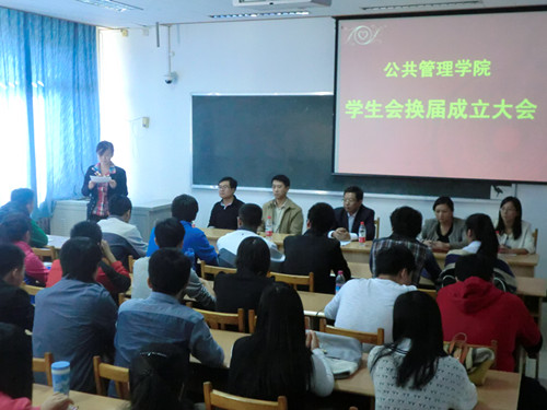 10月18日下午2点四十分,探花视频 第十一届学生会成立大会在学校燕山校区2303教室举行。出席会议的有探花视频 党总支书记王有志、副书记周炎,团总支王恩娟、李昭娜、李广华老师以及学生会全体成员。