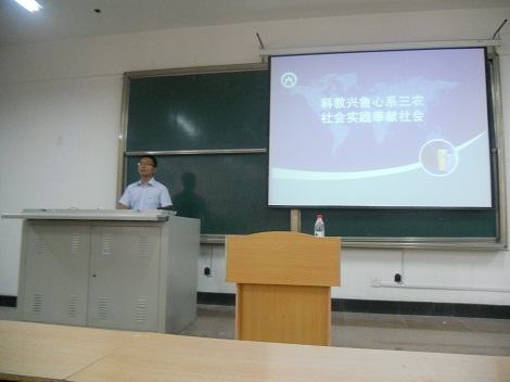 大学生社会实践活动培训系列讲座(二)”在明水1204成功举办。此次活动特别邀请了08级学生蒋海勇同学,以‘科教兴鲁心系三农 社会实践奉献社会’为主题为大家做了精彩演讲。