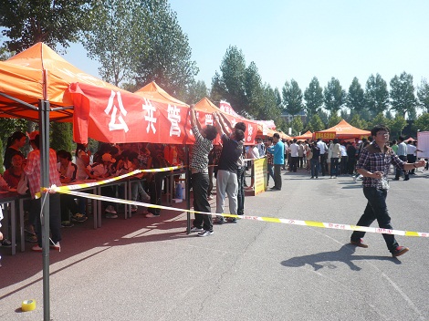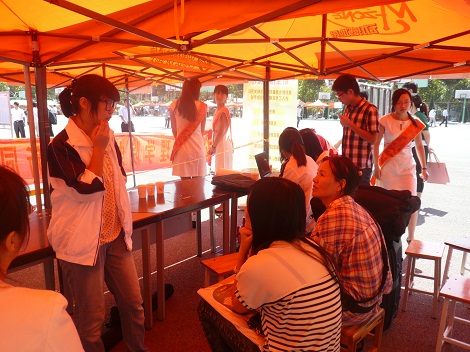 同学早已搭好帐篷,支起展板,做好一切准备,迎接2012级山财大新生的到来。