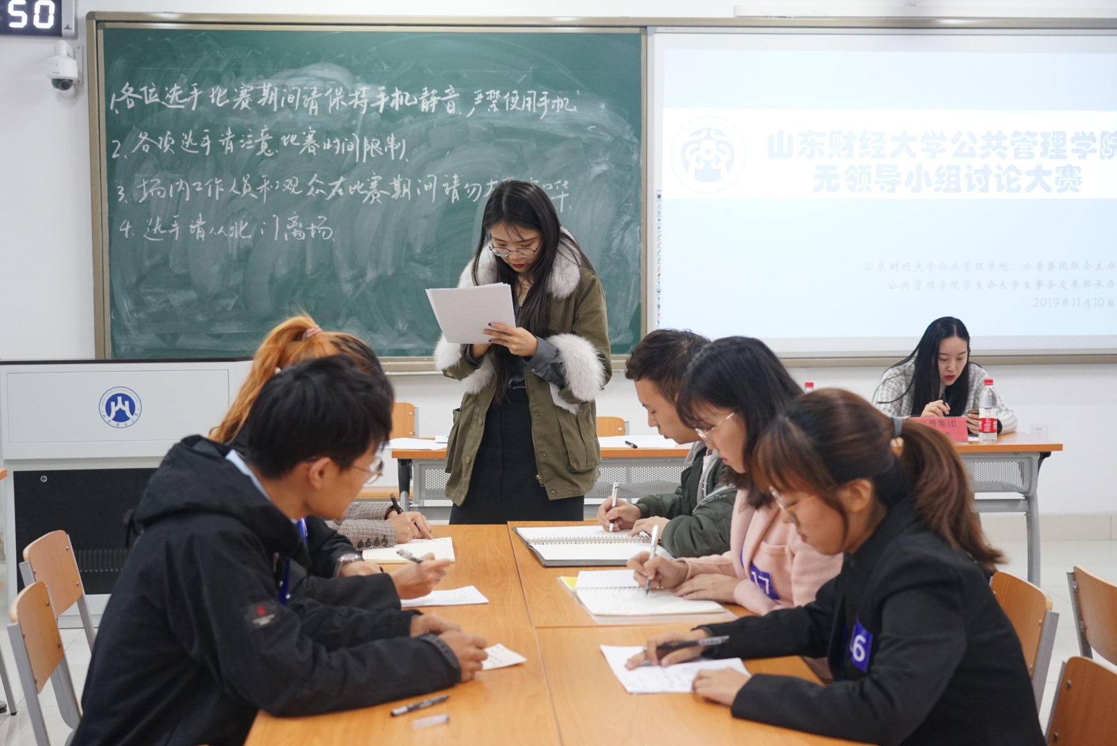 在无领导小组讨论比赛中,每位成员都展现了自己的最佳状态。四组选手在讨论环节积极发言,集众人之智凝聚出色成果。在听取各组讨论结果之后,评委老师对讨论和发言的过程进行了点评并提出了相关建议,选出了12名优秀的同学进行复赛。经过新一轮的激烈竞争,最终评选出优胜选手并颁发奖励。