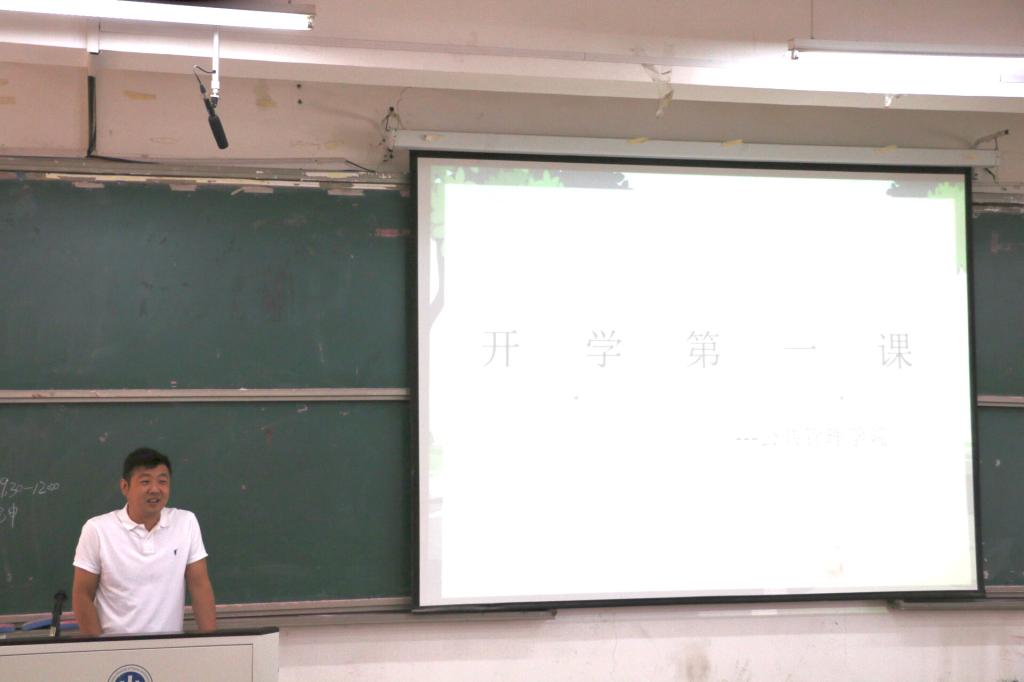 各年级召开“开学第一课”主题班会,班会由各年级辅导员老师主持,全体学生参加会议。