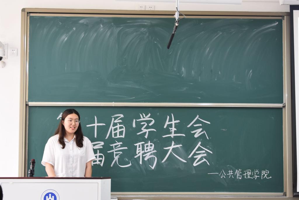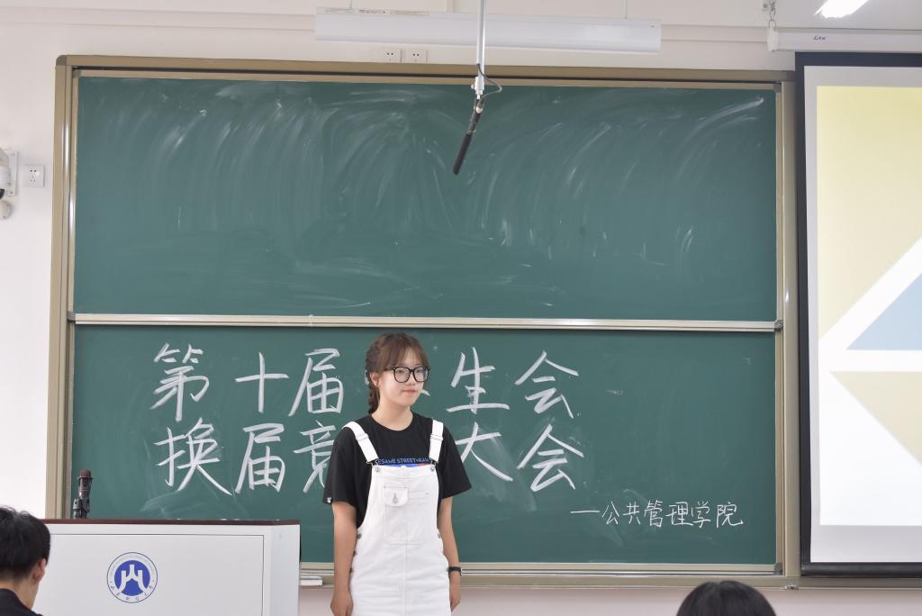 大会进入竞选阶段,由第九届学生会述职与第十届学生会竞选两部分组成。在述职环节,各部门回顾了过去一年的工作历程,明晰了工作得失,对未来的学生会进步发展具有指导性意义。在竞选环节,竞选者依次上台进行竞选演讲,他们讲述了自己的竞争优势、分析了当前的工作缺陷、提出了未来的工作设想。他们的思路发散,但初衷统一,都表明了自己将为建设更优秀的学生会贡献力量的坚定决心。