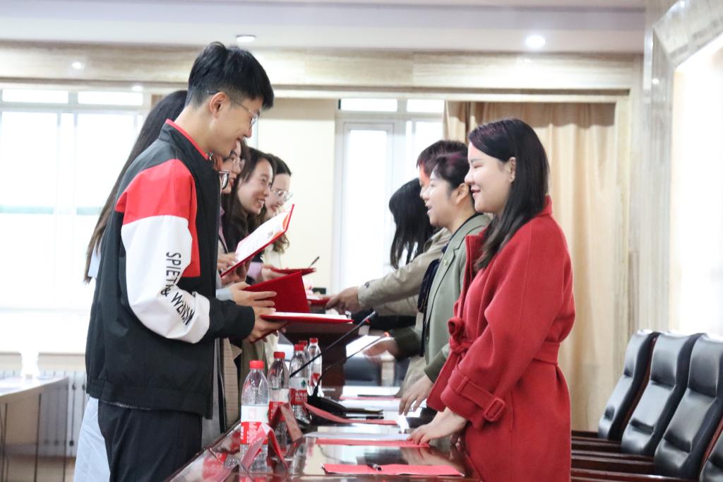会议最后,2020级辅导员韩步彤宣读军训优秀志愿者和军训优秀学生名单,并颁发荣誉证书。而后依次举行了优秀代理班长和优秀代理团支书的颁奖仪式。各位领导老师与第十届学生会成员合影留念。至此,探花视频