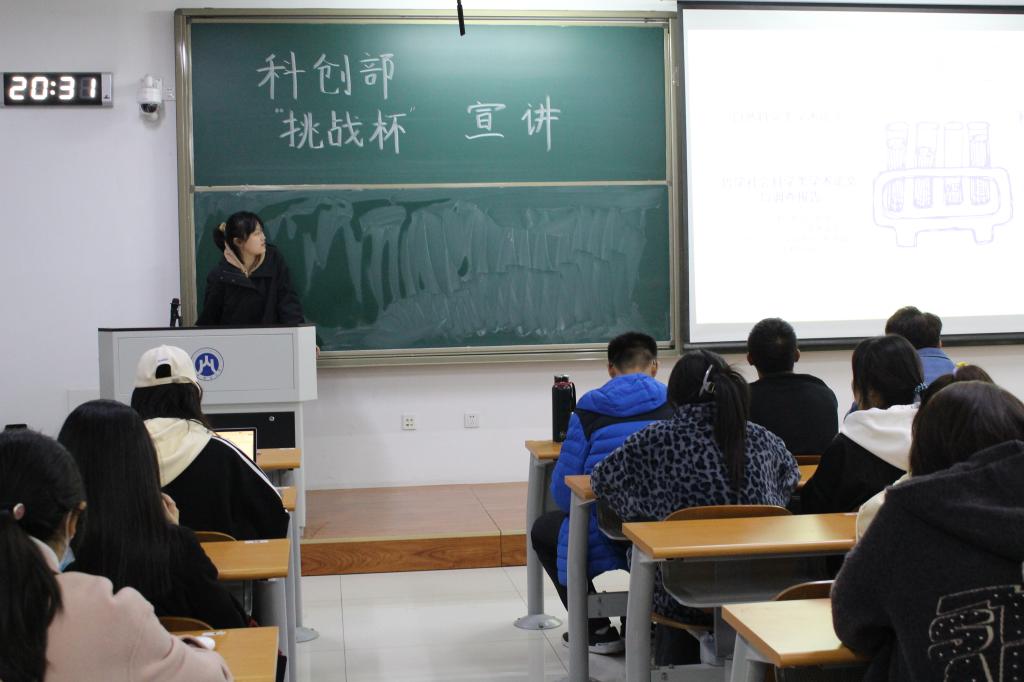 第十八届“挑战杯”学术科技作品竞赛活动宣讲于圣井校区8-112成功举办。此次宣讲由科技创新部主办,科创部干事高子慧、张艺馨、齐姝雅主讲,探花视频