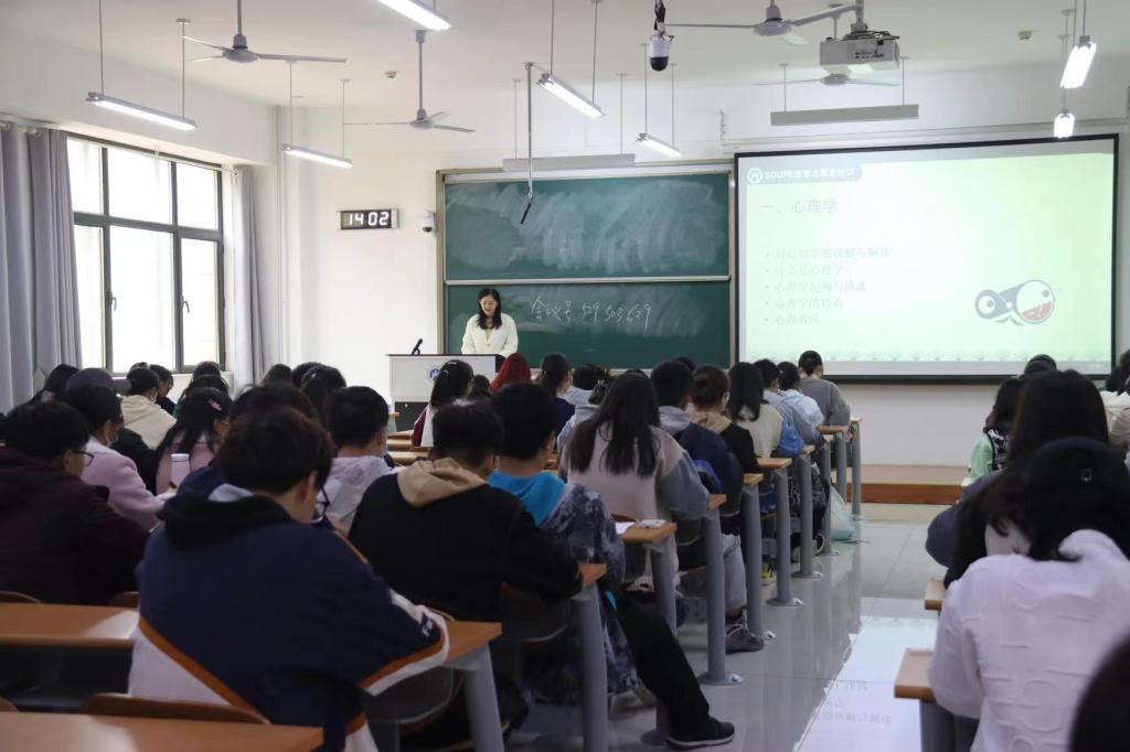 首先,张志斌老师带着同学们做了心理学小游戏,活跃了课堂氛围,使同学们对心理学产生兴趣。然后,张志斌老师从“心理学、心理健康、心理咨询基本知识”、“大学生常见心理困扰与心理异常”、“心理危机应对和求助”、“朋辈心理辅导”四个方面展开讲述。