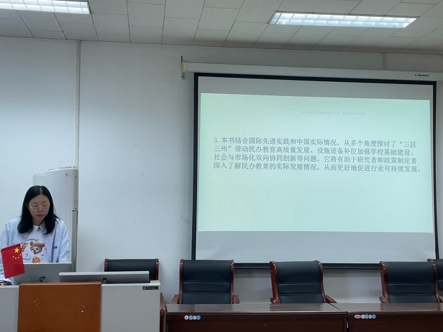 研会在4407举办了“研学行思,品味书韵”读书分享会。此次活动由研究生王琳主持,同学们依次上台作读书分享。