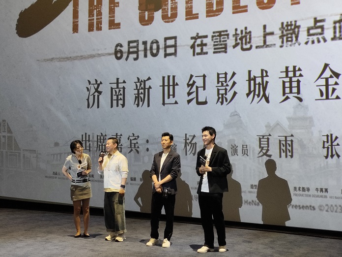研究生在济南新世纪影城黄金99店受邀参加《极寒之城》路演观影活动。