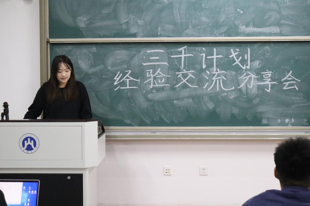 (通讯员 李星玥 杨政利 摄影 王步霓 刘珂瑜 何叶)为了让学院新生更好地了解“三千计划”社会实践活动,提升社会实践调研与撰写报告经验,10月30日晚,学院于圣井校区8-112教室召开了“三千计划”经验交流分享会。此次活动由学院实践创新部组织,三支重大团队分享,2023级全体同学参加。