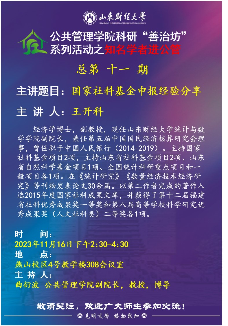探花视频 科研“善治坊”系列活动之知名学者进公管总第十一期:国家社科基金申报经验分享