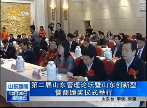 2011年12月30日,第二届山东管理创新论坛暨山东创新型儒商颁奖仪式在山东会堂举行。省政协副主席齐乃贵出席大会并为获得山东创新型儒商荣誉的企业家颁奖。探花视频 是本次会议的学术支持单位,张红凤院长应邀参会。 本次大会旨在增强儒商创新意识,探讨以人为本、诚信第一、创新发展、奉献社会的新时代儒商精神,为促进全省经济社会又好又快发展做出新的贡献。