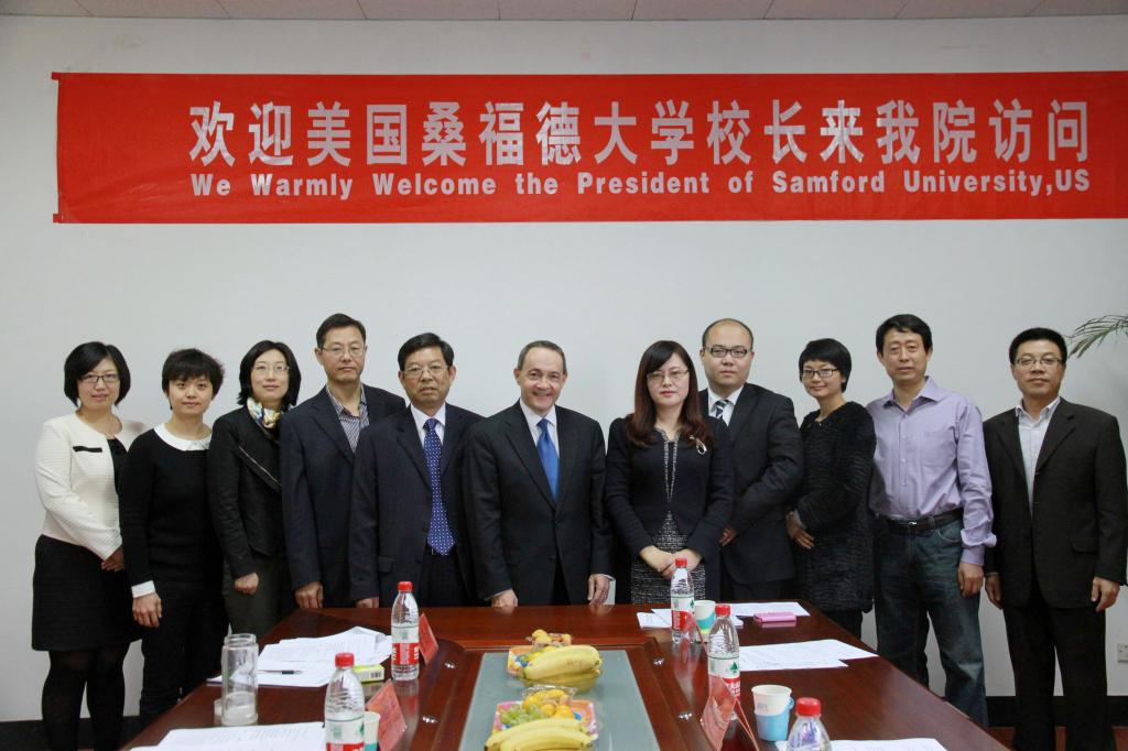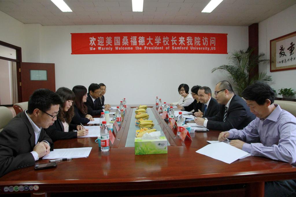 的热情接待表示了感谢,随后就桑福德大学的历史发展、院系构成、校园文化、对外交流等方面做了一一介绍,并重点介绍了管理学学科的师资力量及相关专业发展状况,表示愿意为双方合作做出积极努力。