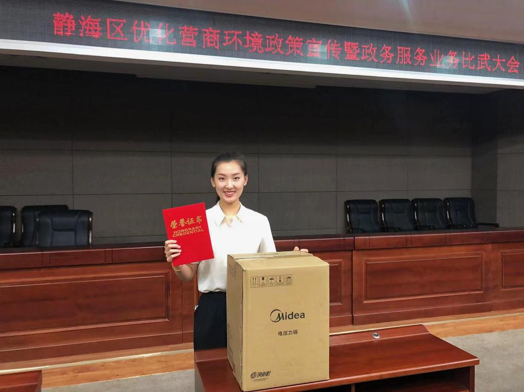 行政管理专业2022届毕业生,在校期间曾担任宣传委员,获得一次一等奖学金,两次二等奖学金,获得优秀共青团员称号。该生考取2022年天津市市考、国考、山东省枣庄市峄城区“人才优选”均成功上岸,现就职于天津市静海区人民政府政务服务办公室。该生立足岗位,踏实服务群众,忠于职守,时刻牢记“群众事,无小事”。深化“放管服”改革,加快建设一流营商环境,推动经济社会高质量发展。推动工程建设项目改革,大力推进落实“一制三化”要求, 提高项目审批服务效率。完成内外资企业备案、核准及政府投资项目审批工作,包括指导项目单位完成网上申报,完成项目线上线下审核、接件、受理、办结等相关工作。完成各类项目备案、核准、审批共213件,主动上手帮助企业熟悉并完成备案,真正做到“不见面”审批,全年完成自动备案620余件。参加静海区优化营商环境政策宣传暨政务服务业务比武大会,获得一等奖。