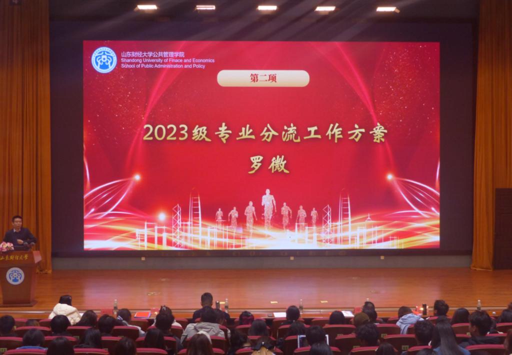 2023级大类招生专业学生分流工作说明会在圣井校区图书馆一楼报告厅顺利召开。副院长罗微、城市与土地资源管理系主任韩琭、政府管理系主任邹涛、劳动与社会保障系副主任刘玉安、学工办主任张辉以及2023级全体学生参加了此次会议。会议由2023级辅导员张志斌主持。