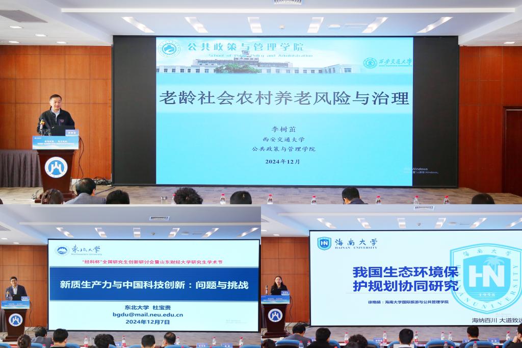 院长徐艳晴分别做《新质生产力与中国科技创新:问题与挑战》《我国生态环境保护规划协同研究》主题报告。分会场讨论阶段,与会研究生通过专家讲座、论文宣讲与点评、专题研讨等形式进行充分交流学习。闭幕式阶段,经济、管理、综合及研究生会发展分论坛负责人进行了情况汇报,论文类、文献综述类及案例大赛类获奖研究生代表分别发言。