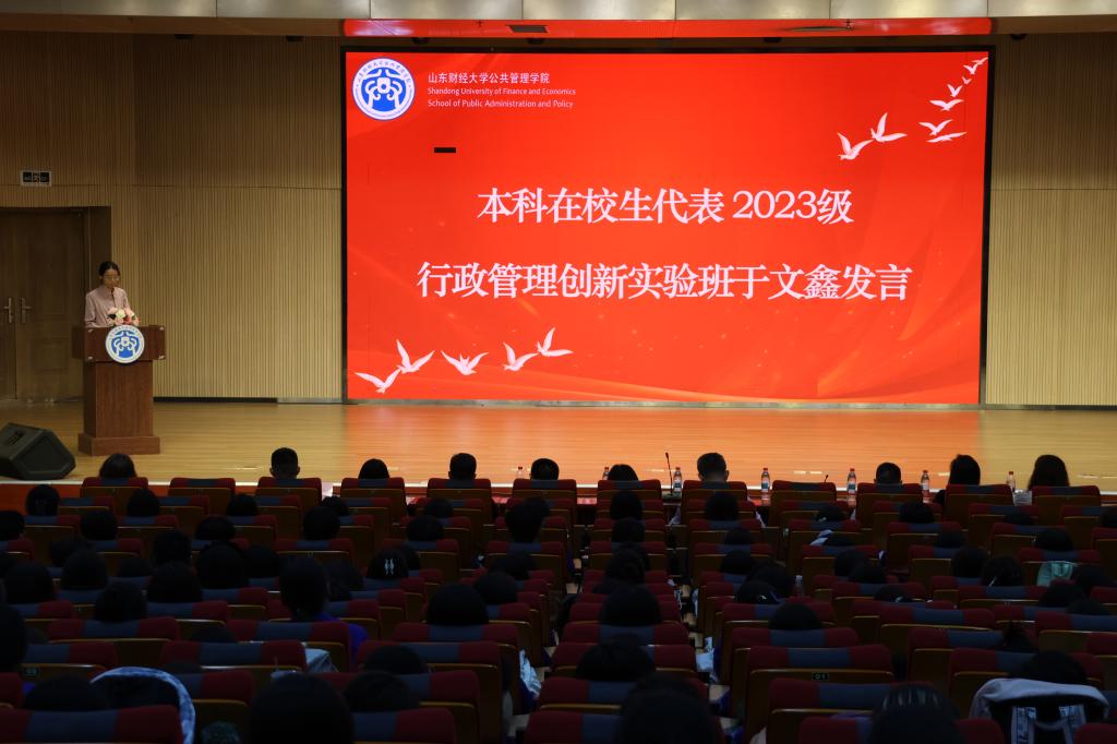 研究生新生代表、2025级公共组织与人力资源管理专业研究生苏馨、回顾了自己的考研历程,建议大家在研究生阶段做到潜心学习、勇于实践和协作创新,并结合社会实践经验,呼吁新生牢记青年使命、勇担时代责任。本科生新生代表、2025级公共管理类4班王贻萱表达了加入学院的欣喜与对未来的憧憬,并表示,大学阶段应以勤奋踏实为基,积极开拓未知,充分利用学院提供的理论与实践平台,主动参与志愿服务和社团活动,不断提升综合能力、涵养家国情怀。