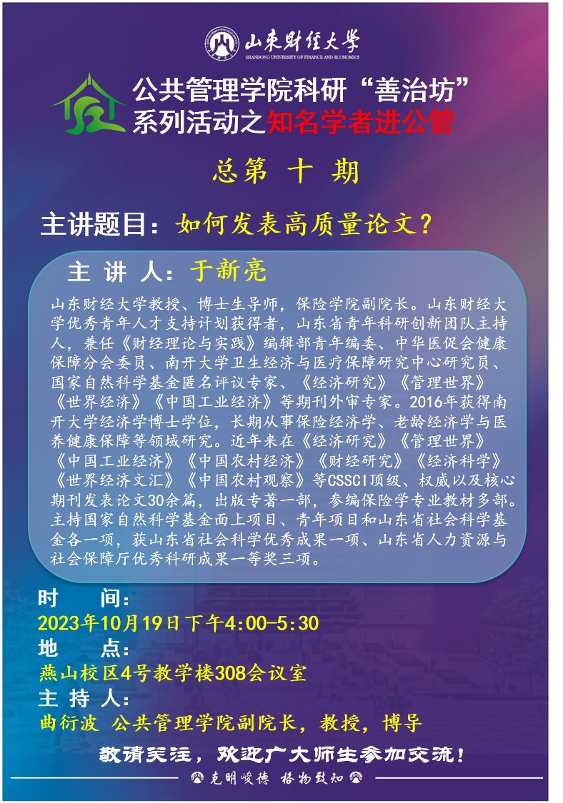 探花视频 科研“善治坊”系列活动之知名学者进公管总第十期:如何发表高质量论文?