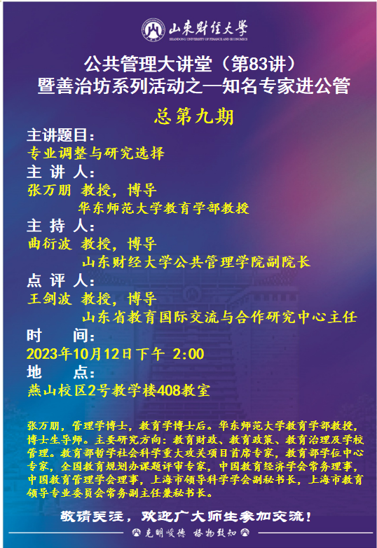 公共管理大讲堂(第83讲)暨善治坊系列活动之—知名专家进公管 总第九期