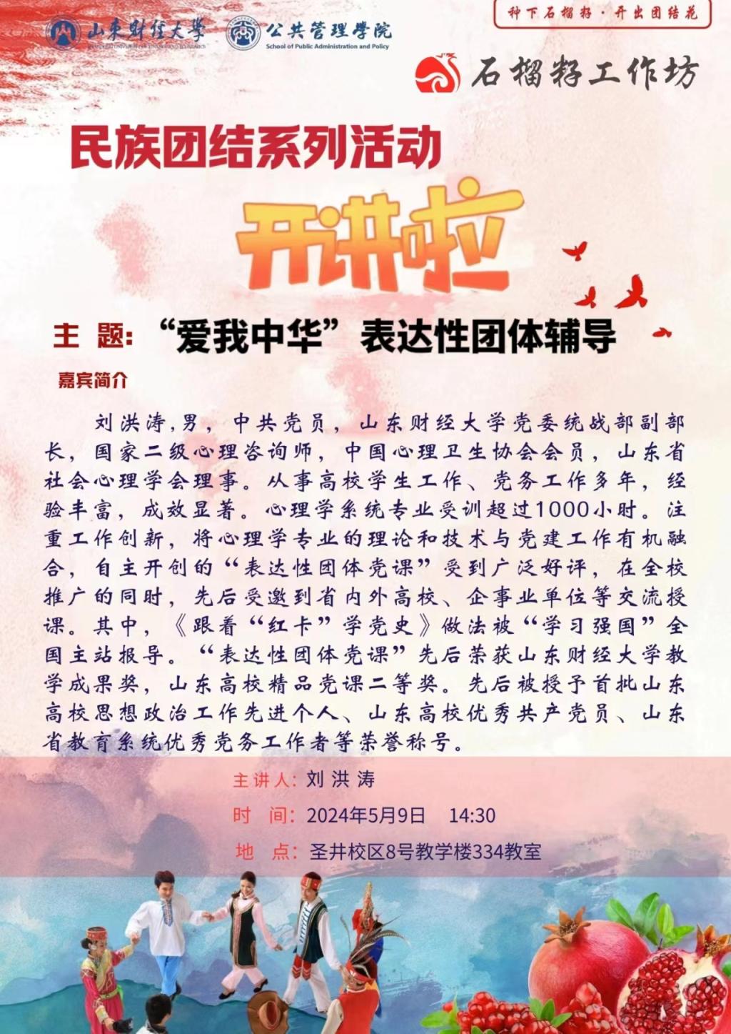 公共管理大讲堂(第84讲)暨石榴籽工作坊民族团结系列活动:“爱我中华”表达性团体性辅导