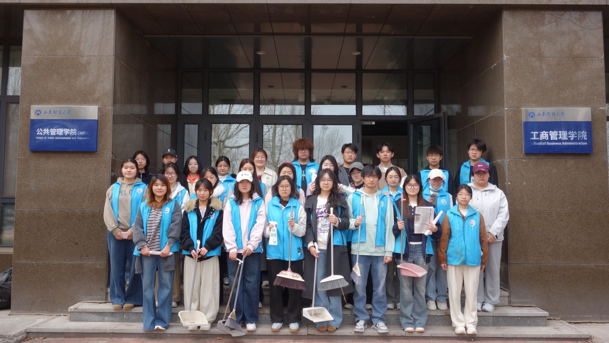 在章丘校区八号楼周边组织“洁校园·整环境”义务劳动。同学们分工协作,细致擦拭宣传栏与指示牌,规范整理停放车辆,疏通道路交通,清理散落垃圾,以实际行动美化校园环境。