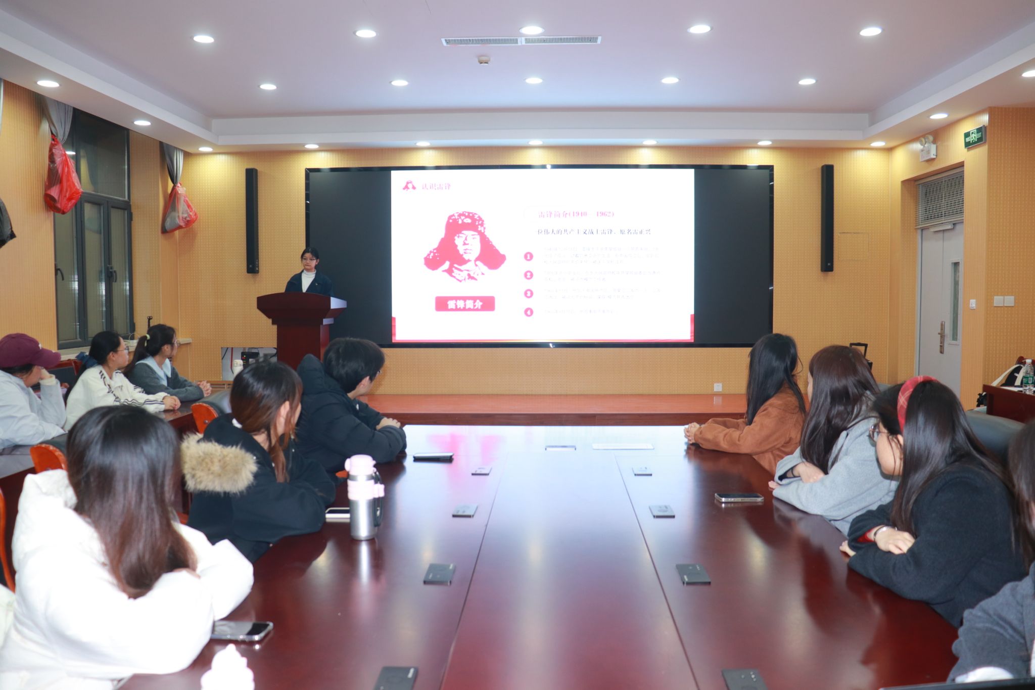 在章丘校区8128会议室举办“学雷锋·讲事迹”主题团日活动。优秀学生代表深情讲述雷锋同志先进事迹,深入解读雷锋精神的时代内涵。全体参会成员围绕新时代青年如何传承并践行雷锋精神展开交流讨论,并结合学习、生活、志愿服务发出倡议:以雷锋为榜样,勤学善思、严于律己,在日常生活中互助友爱,在实践中主动奉献,用实际行动传承雷锋精神,让文明行为蔚然成风。