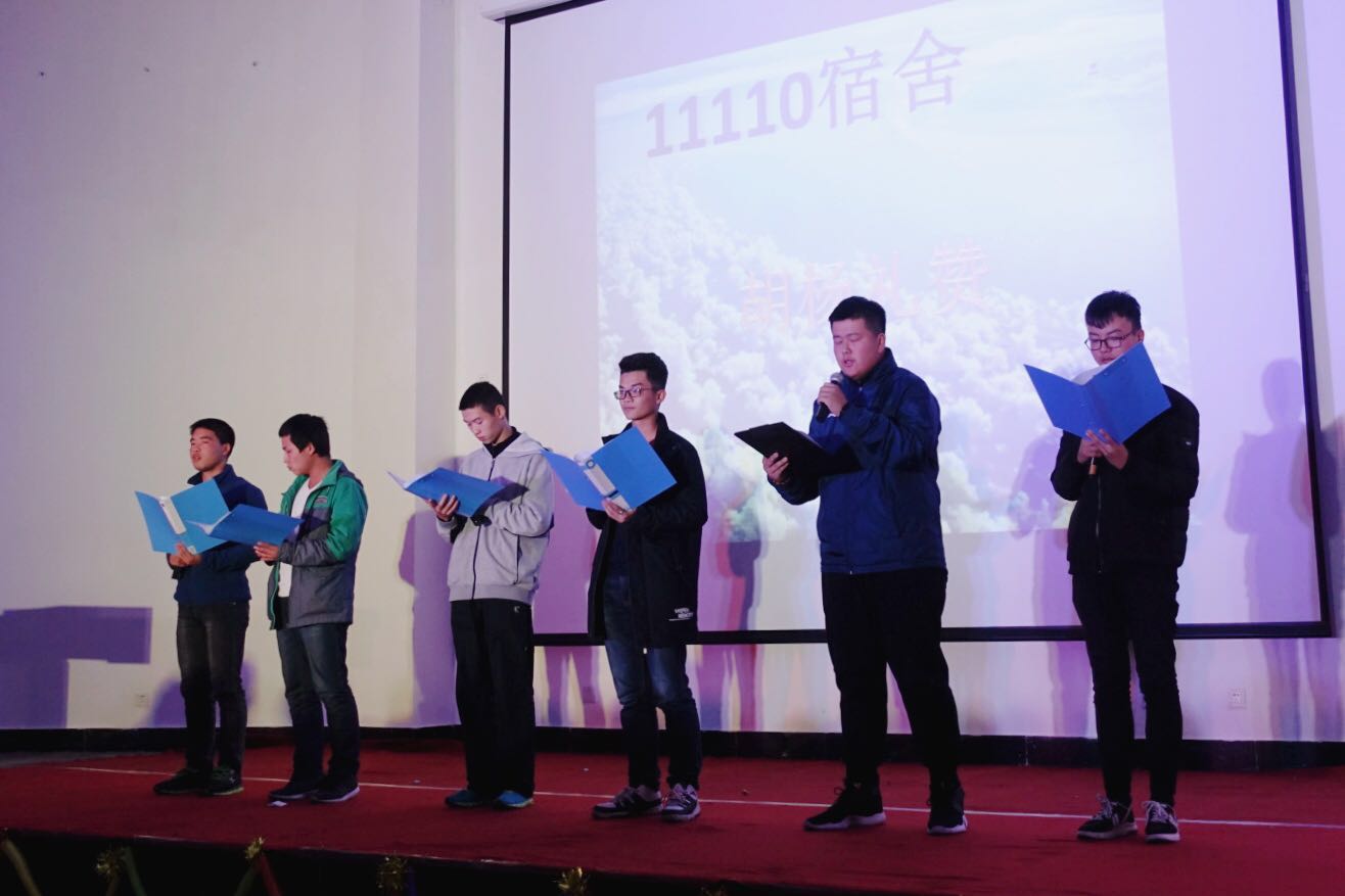 学生会主席团成员刘瑞、郭云同学为获奖宿舍颁奖。晚会在文艺部副部长陈祥皓演唱的歌曲《房间》中圆满落幕。