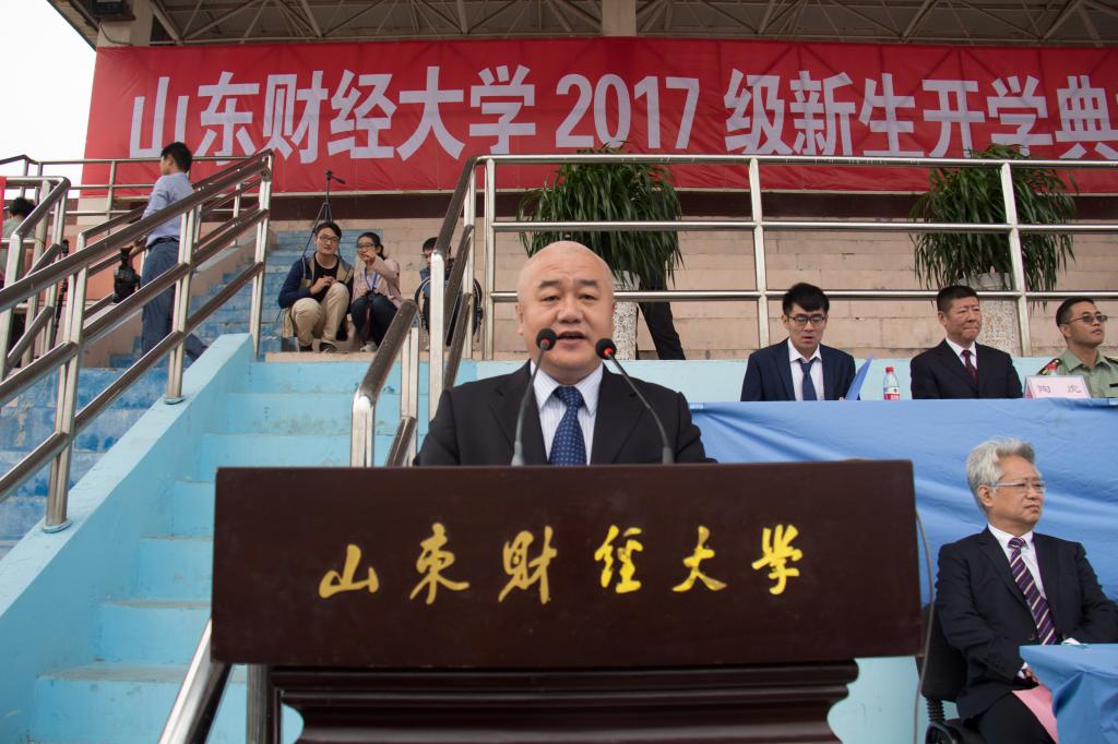 副院长李国锋教授作为教师代表进行了发言,他寄语财大学子,多读书、立远志、善管理,敢于做时间的主人。