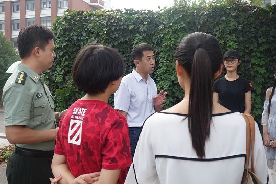 党委副书记周炎和辅导员张辉亲临训练场地看望并慰问正在紧张有序训练的教官和新生,勉励他们发扬吃苦耐劳的精神,以良好的状态迎接每天的军训;叮嘱同学们在训练之余注意休息,防止中暑;同时要求军训服务人员做好服务工作,遇到紧急情况灵活处理,及时处理各种突发问题。