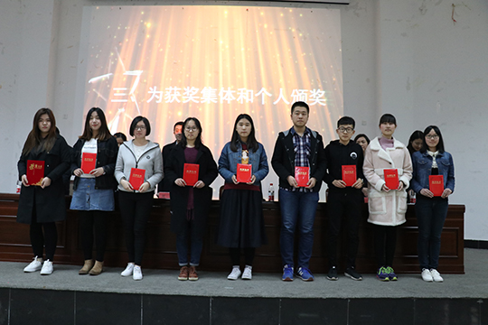 关于表彰2016—2017学期学风建设先进集体及个人的表彰通报》,随后由与会领导与老师为荣获“学习标兵”、“学习先进个人”、“学风建设先进集体”、“读书之星”和“文明宿舍”的集体和个人颁奖。