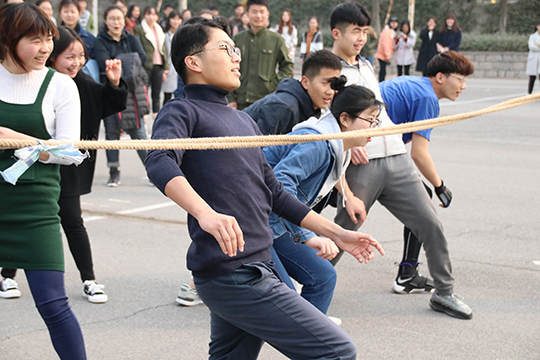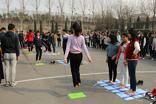 与传统运动会不同的是,本次趣味运动会将竞技与娱乐相结合。“六人七足”、“123木头人”、“指压板跳绳”、“多人接力”、拔河等项目不仅富有趣味性和娱乐性,更是各个班级精诚团结、奋力协作精神的集中体现。“指压板跳绳”项目,运动员们光着脚努力克服在指压板上跳绳带来的疼痛,他们坚韧顽强的精神激励着每位队员。“六人七足”项目,同学们手挽着手保持平衡,一边喊着口号一边加速向终点奔去,中间虽然有的班级运动员摔倒在地,但是为了集体的荣誉他们立即爬起,奋勇直追。“多人接力”活动中运动员们配合默契,看似简单的运动也体现了他们每个人的协作与担当。拔河比赛是本次运动会的重头戏,气氛瞬间达到高潮。经过紧张角逐,2016级劳动与社会保障一班行政管理三班、公共事业管理一班分列此次比赛的前三名。