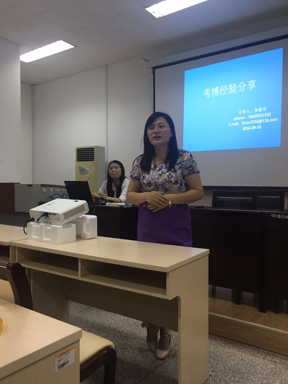 孙敬华结合自身的考博经验,从读博选择、信息搜集、应考复习、导师选择等方面进行了详细讲解,就如何尽最大可能与所报考学校的导师取得联系,咨询导师意见以及搜集考试题型等有效信息进行了重点解读。同时,鼓励有志向考博的同学要充分认清考博历程的艰辛,要有思想准备,要持之以恒坚持下去。在交流互动环节,同学们就自己感兴趣的话题积极提问,内容涉及专业课及英语的备考、科研论文的发表等多个方面,孙敬华都进行了耐心的解答。周书记在发言中鼓励同学们考研要早规划、早动手、通过自身努力将梦想付诸实践。交流会最后,张院长与在场的研究生分享了自己的考博经历,并告诫同学们要有创新精神,善于抓住灵感;要耐得住寂寞,甘于坐冷板凳。