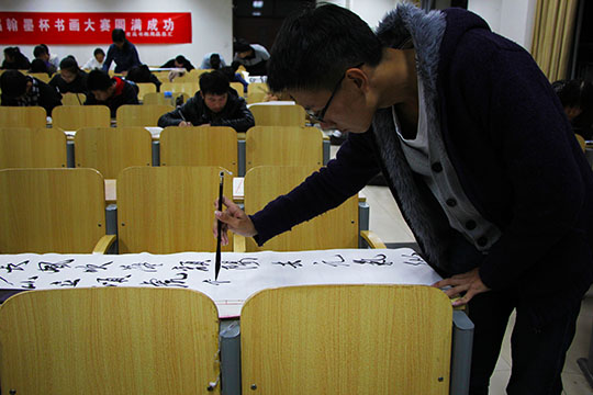 第五届“翰墨杯”校园书画大赛在明水校区2211、2206教室举行,全校共近百名同学到场参加本次比赛。