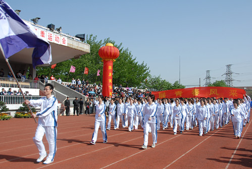 上午八点半,沐浴着灿烂的朝阳,开幕式正式开始。伴随着《运动员进行曲》的激昂旋律,各院系以及各机关单位的方阵在国旗方阵、校徽方阵、花束方阵、仪仗队方阵、裁判员方阵的引领下,昂首步入会场。各方阵口号嘹亮,彰显出参赛队员的风采和高昂斗志。探花视频 学生方阵高举湛蓝的院旗,队形整齐,步伐矫健的走进会场。“魅力公管,激情无限;放飞梦想,创造辉煌”的响亮口号彰显出探花视频 健儿执着的信念和不屈的斗志。待入场完毕,全场响起了雄壮的《义勇军进行曲》。随后,在郝书辰书记的致辞中,2012年山东省财税机关暨探花视频 春季运动会比赛正式开始。跳高、铅球、一百米、四百米、一千五百米以及4*400接力等各项目均在第一天的比赛中激烈有序的进行着。公管健儿不畏艰难,勇于挑战,并在比赛中取得优异的成绩。