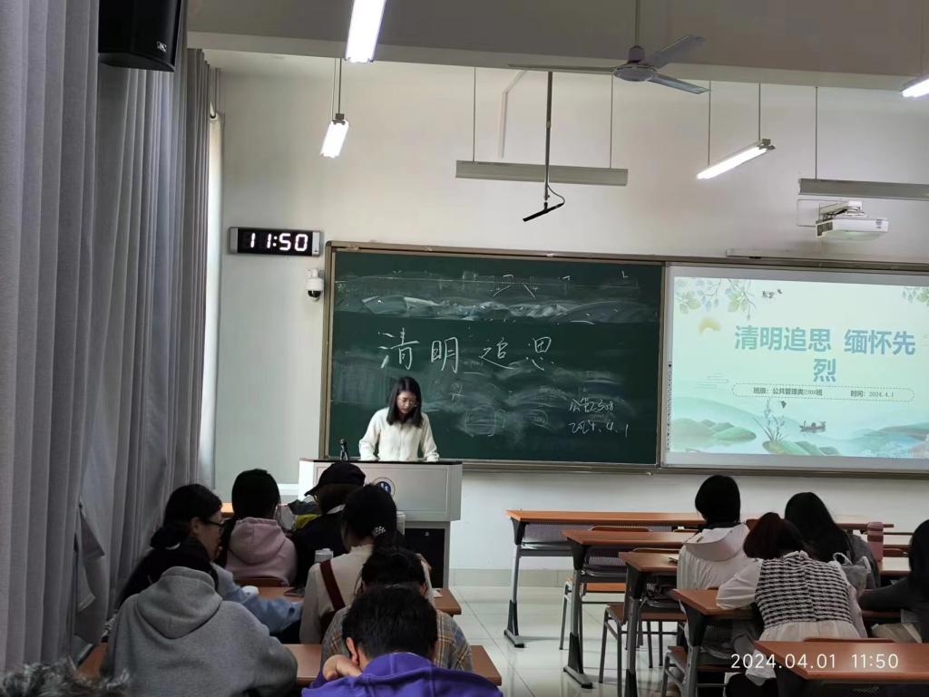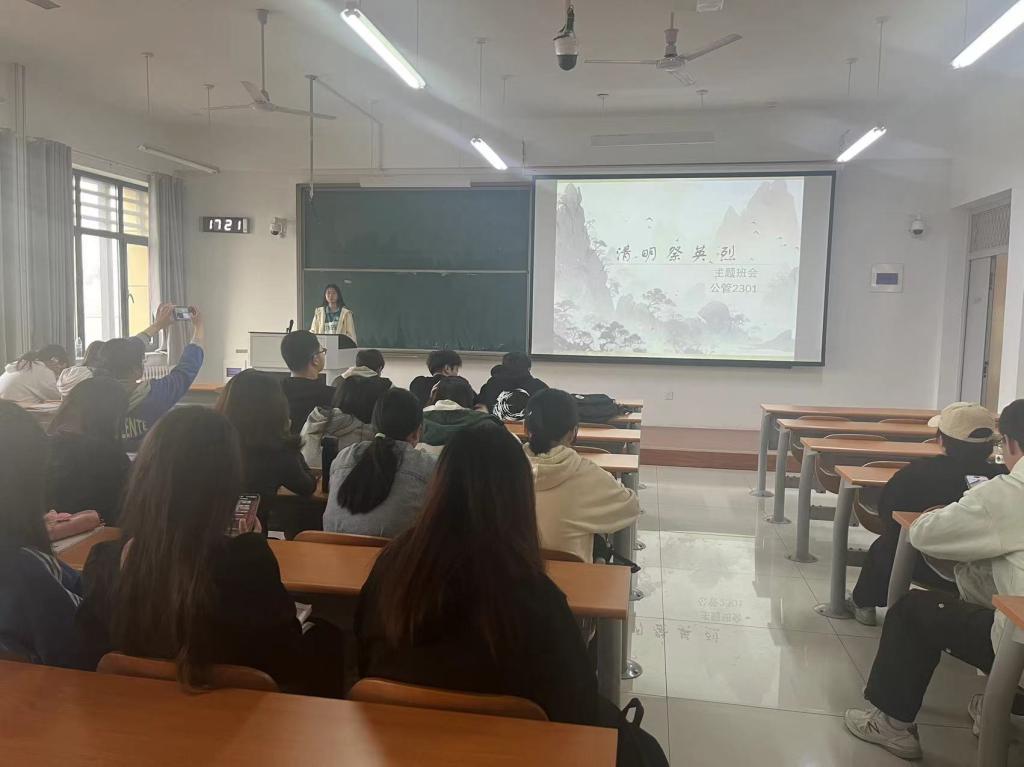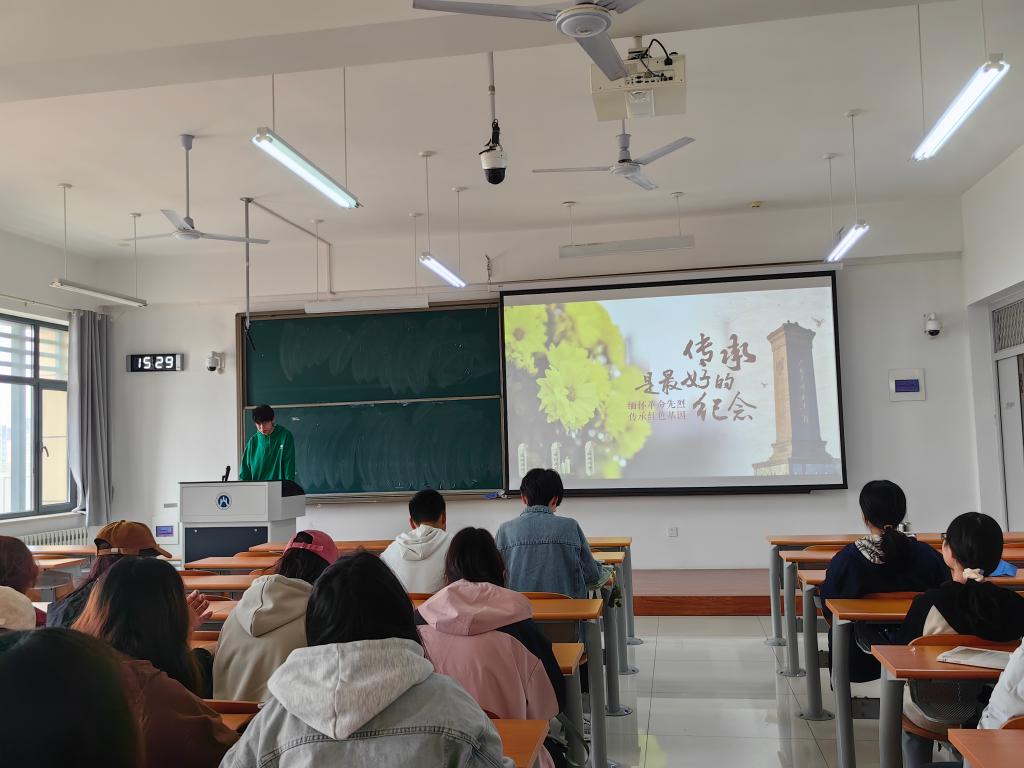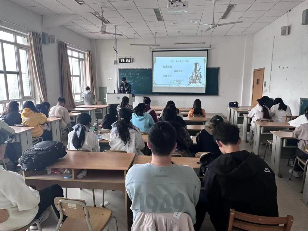 于圣井校区八号教学楼开展“清明祭英烈”主题班会,此次班会由2023级班团组织,2023级全体同学参加。