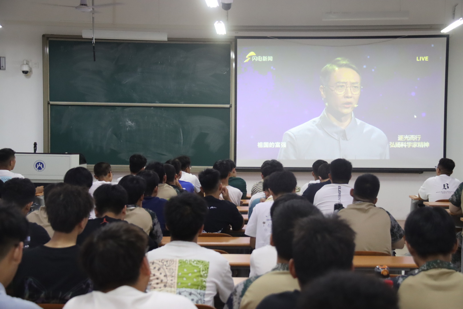 (通讯员 张敏 摄影 田怡帆 刘珂瑜 王步霓)为向学生宣传弘扬科学家精神,在大学期间继续筑牢优良学风,9月2日晚,学院于圣井校区6号、7号教学楼组织学生集体观看“逐光而行”弘扬科学家精神“开学第一课”融媒节目,2022级、2023级、2024级全体学生参与。